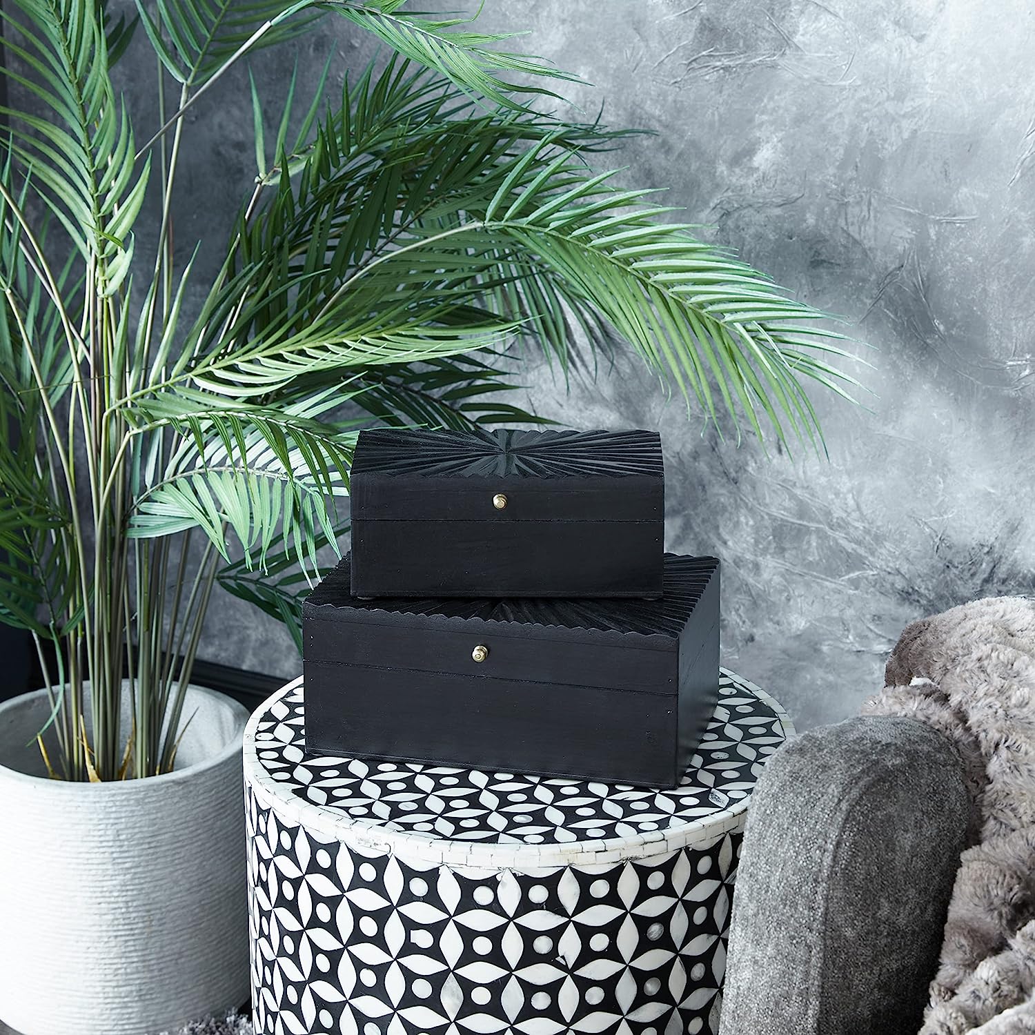 Perfect way to add depth and texture to your surface space with this compact and discreet box. A practical yet stylish upgrade that instantly elevate the look of your room. Display these elegant boxes on your side table, coffee table, bar area, closet/vanity area, and the bedroom. Designed with black rubber stoppers at the base that prevent scratching furniture and table tops, as well as sliding around. This item ships in 1 carton. Wood box makes a great gift for any occasion. Suitable for indoor use only. This item comes as a set of 2. Contemporary.