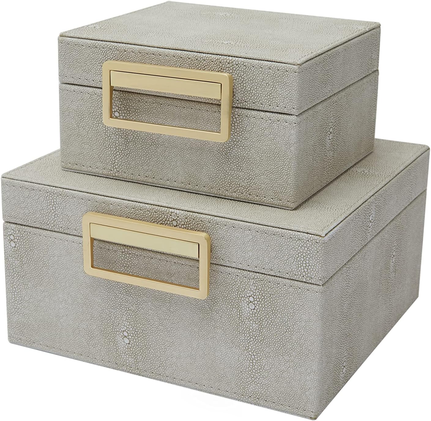 Faux Ivory Shagreen Leather Set of 2 Square Keepsake Boxes, Decorative Storage boxes, Dresser Organizer , Cosmetic Box (Ivory)