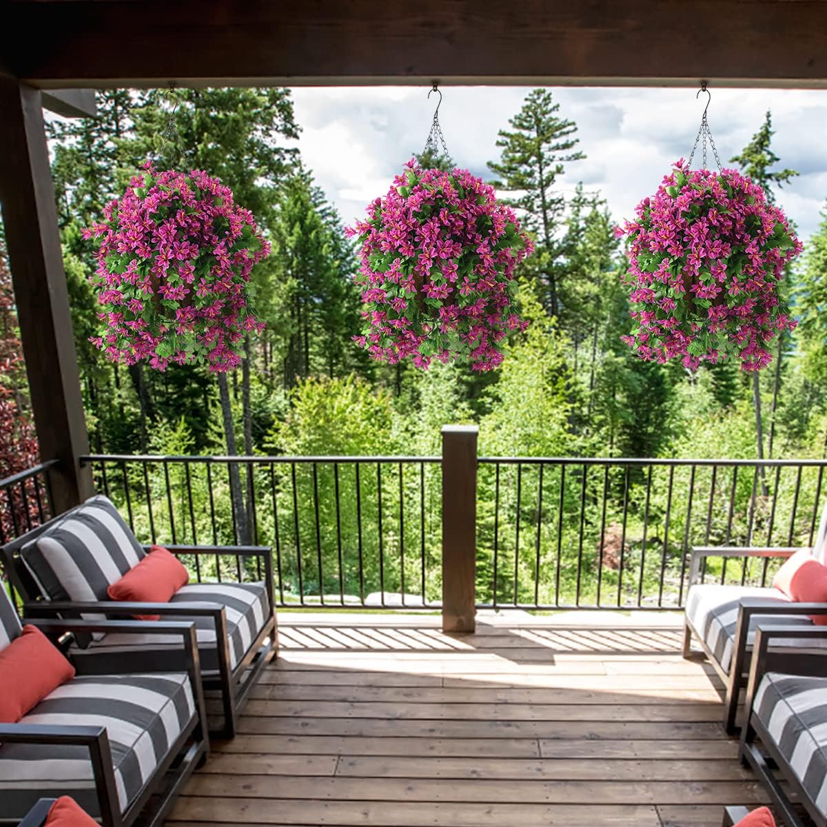 - Fake hanging flower in a basket looks real and stylish, making it the perfect hanging basket for your home, patio, balcony, garden, indoor and outdoor. It blooms all year and adds a sense of spring to your home.