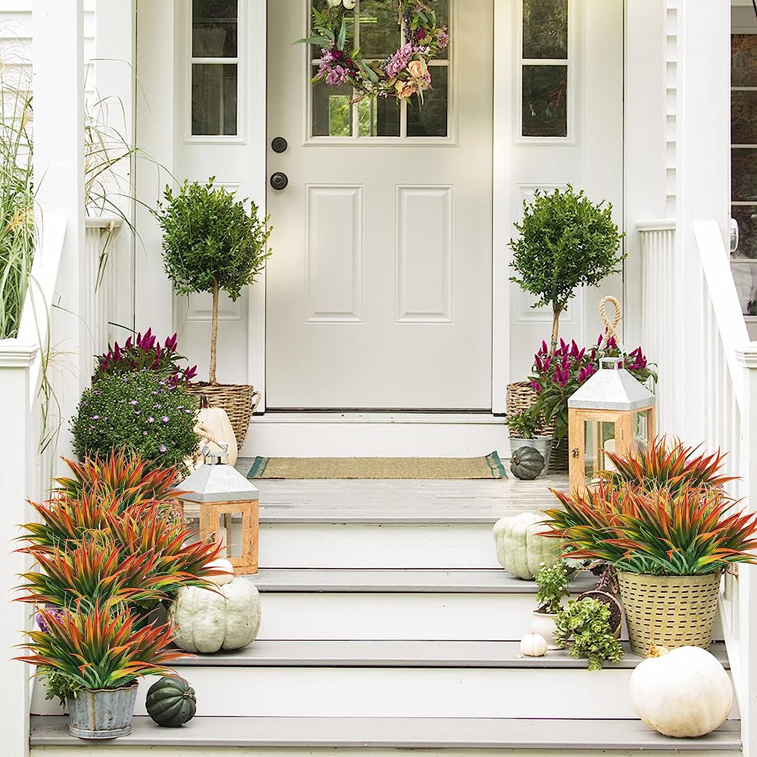 Phliofd 6Pcs Artificial Grass Fake Plants 17.3in Outdoor Plastic Plants UV Resistant Greenery Fake Grass for Home Window Garden Office Patio Hanging Planter Pathway Front Porch Décor Red